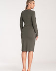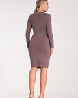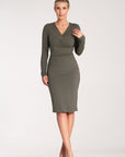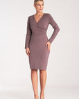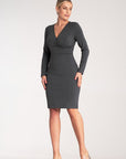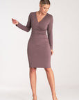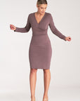 Fitted dress with long sleeves. V-neckline made of overlapping fabric. Side zip closure. Length above the knee.