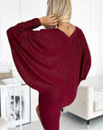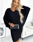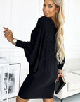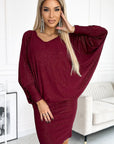The sweater bat dress by Numoco is a comfortable and warm option for cold days, sewn from a stretchy sweater knit in a unique beige print with a black and white pattern. Thanks to the neckline, it can be worn both straight and slightly loose, allowing for a variety of styling options. Polish product, ideal for casual and elegant occasions.