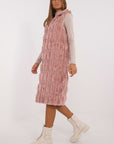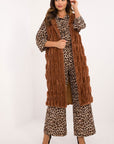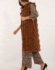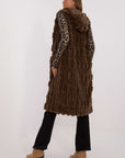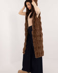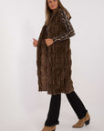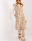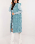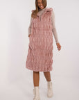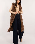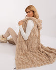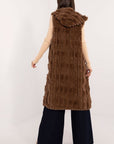 Created for women who appreciate elegance and comfort, this fur vest is a unique piece of your closet. The vest is the perfect combination of elegance and comfort. Its refined design makes it ideal for wearing in formal situations, to work or to important business meetings. Thanks to its sophisticated character, the vest will be perfect as a part of your outfit for work and business occasions, giving your styling a unique touch. The vest is made of durable and easy-care polyester. It is a material that not only looks luxurious, but also provides comfortable wear. Designed for colder days, the fur vest perfectly protects against the cold, while adding elegance to any styling. The vest is equipped with subtle but effective insulation, making it not only a fashionable accessory, but also a functional piece of clothing for winter days. The length of the vest, reaching before the knee, gives the whole thing a chic look, while emphasizing the subtlety of the cut. An additional element in the form of a hood adds some nonchalance to the vest, while protecting it from the cold and wind. A convenient zipper closure allows you to quickly and easily adjust the vest to changing weather conditions. Functional slip pockets are a practical addition, allowing you to store your most necessary small items. This fur vest is not only a fashionable piece of clothing, but also a practical choice for winter days, which allows you to feel elegant and special in any situation.